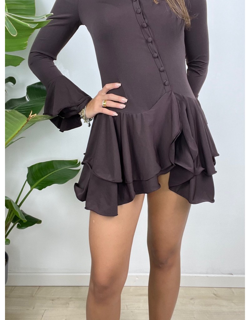 Dress con balza asimmetrica e bottoncini.