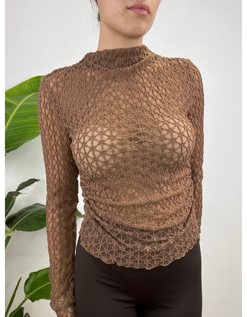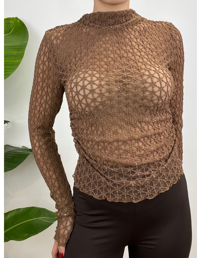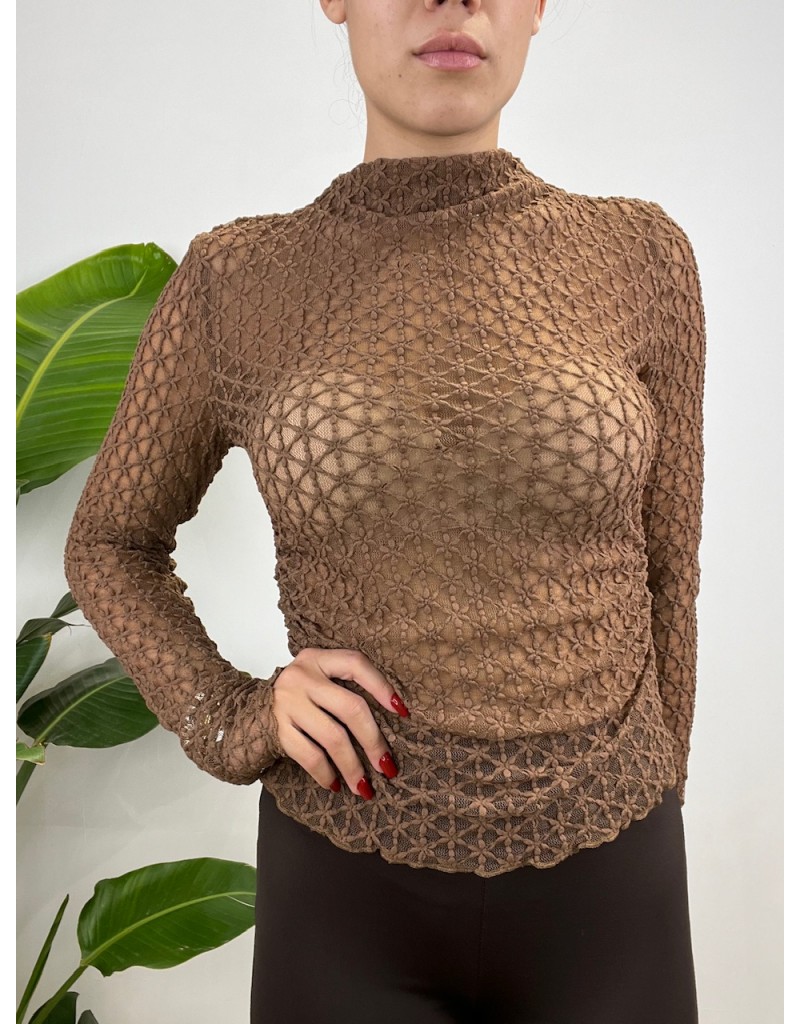 Maglia in total pizzo con un po' di colletto e polsino particolare.