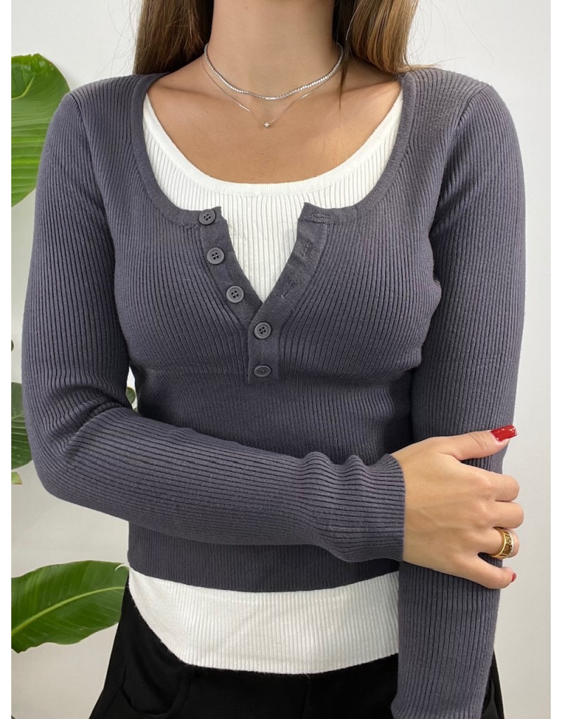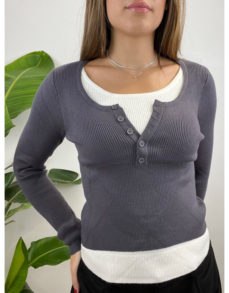 Pull modello a costine con bottoncini.