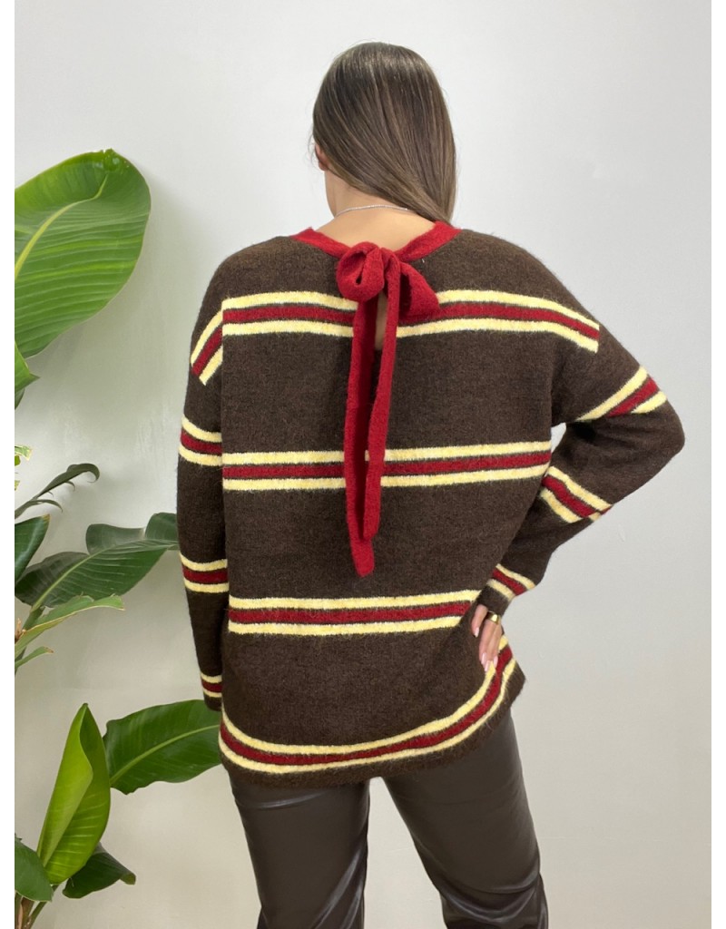 Pullover over in maglia calda con fiocco posteriore.