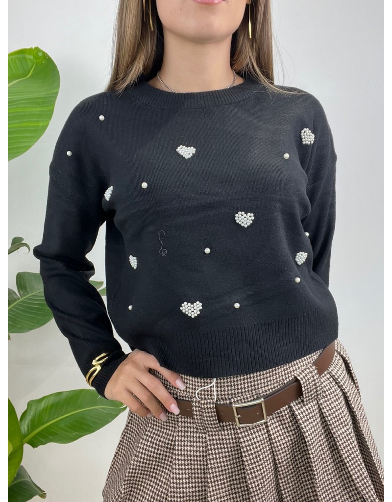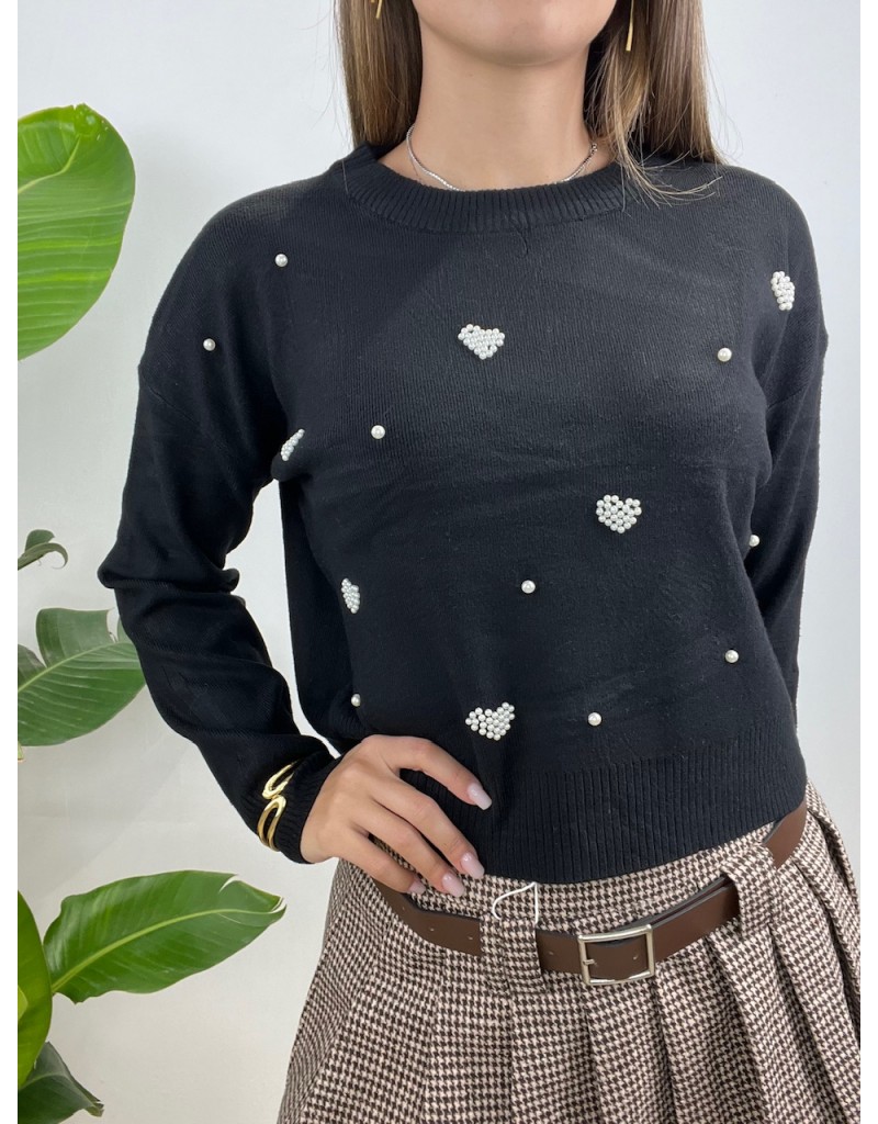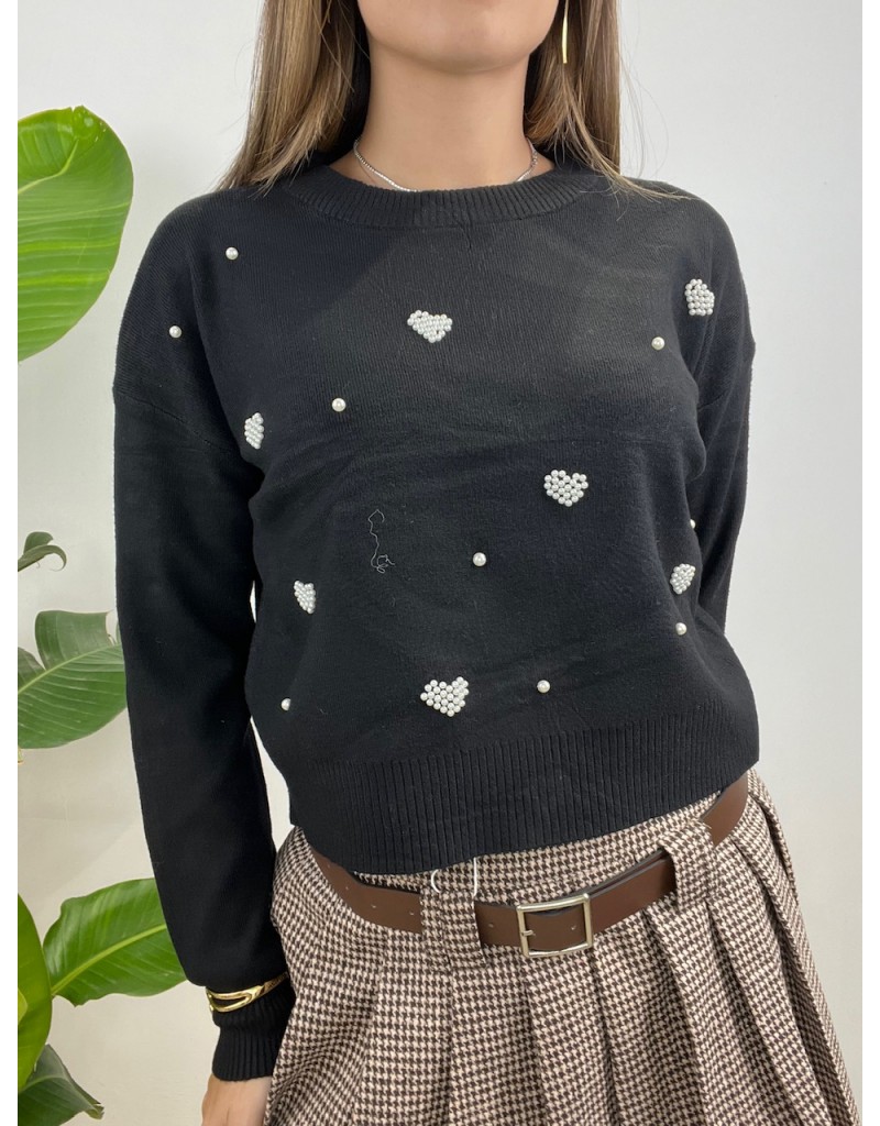 Pullover girocollo con cuoricini a perline.