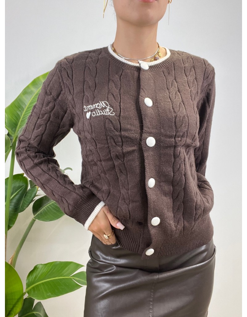 Cardigan girocollo con treccine e bottoni a colore bordino.