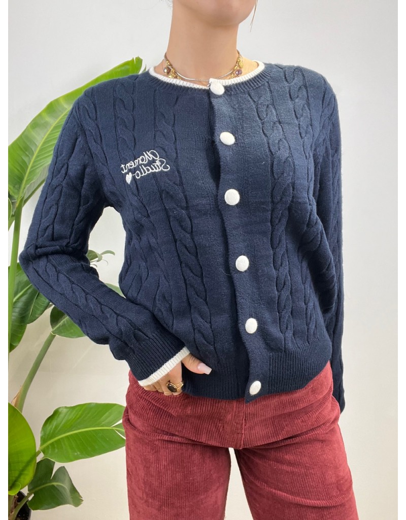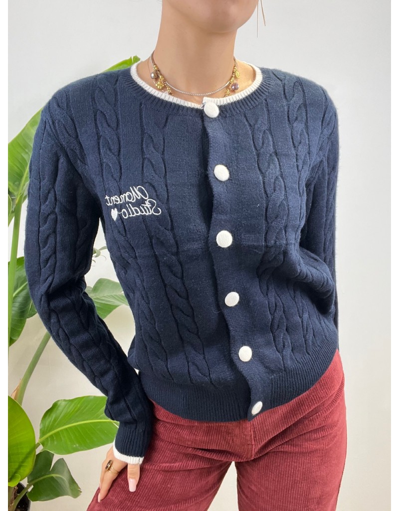 Cardigan girocollo con treccine e bottoni a colore bordino.