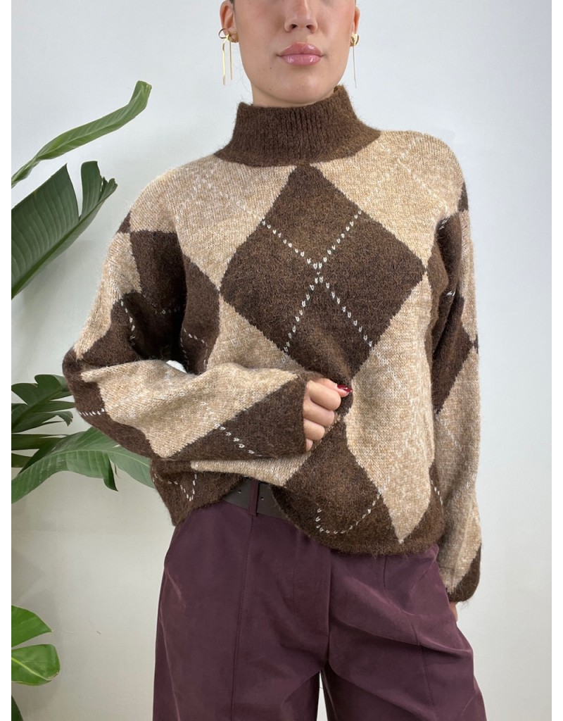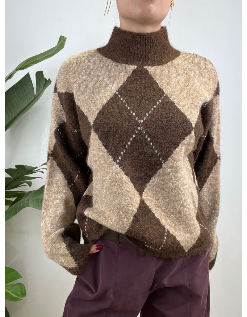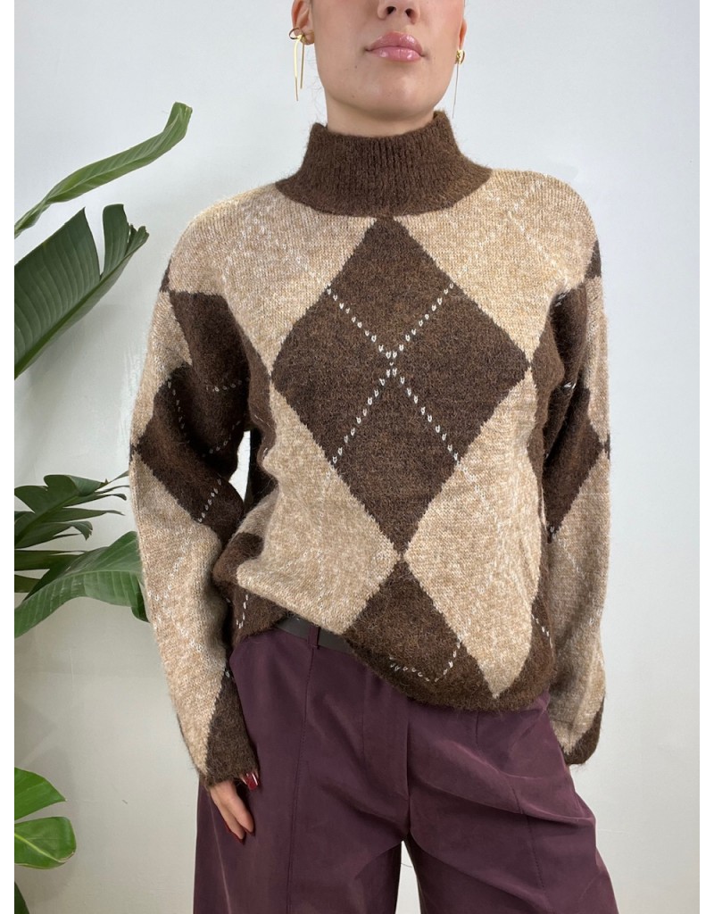 Pullover mezzo collo con fantasia a quadri