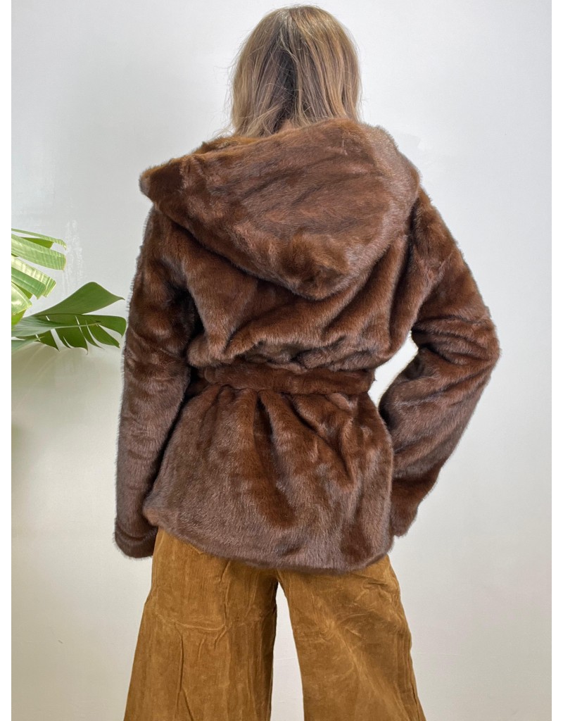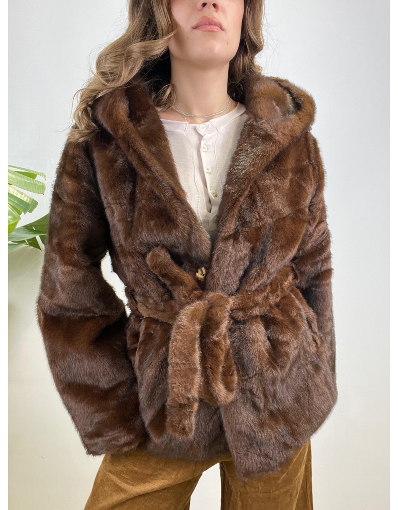 Ecopelliccia in tessuto TopQuality, modello con cintura e cappuccio.
