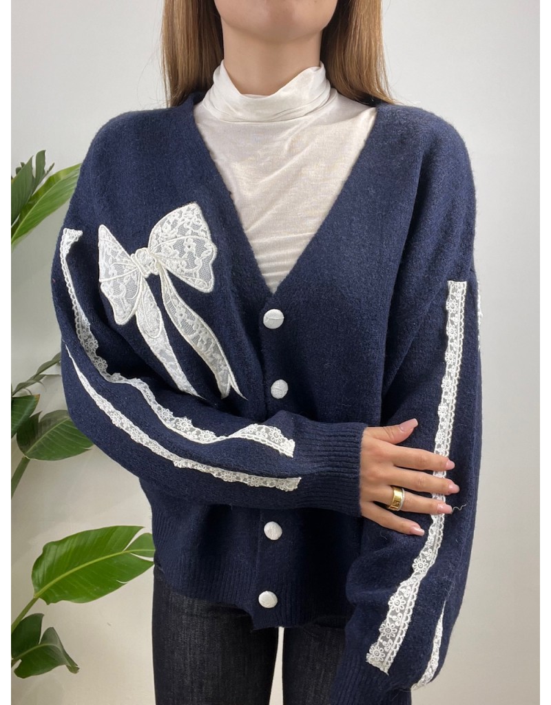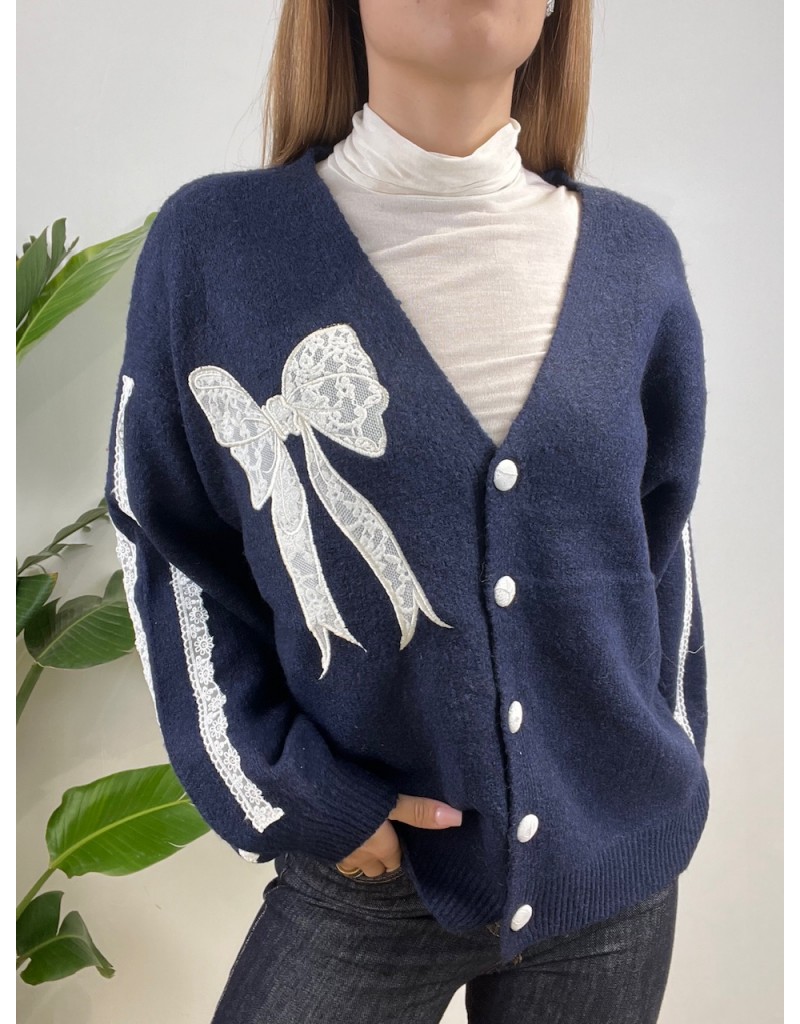 Cardigan con fiocco in pizzo.