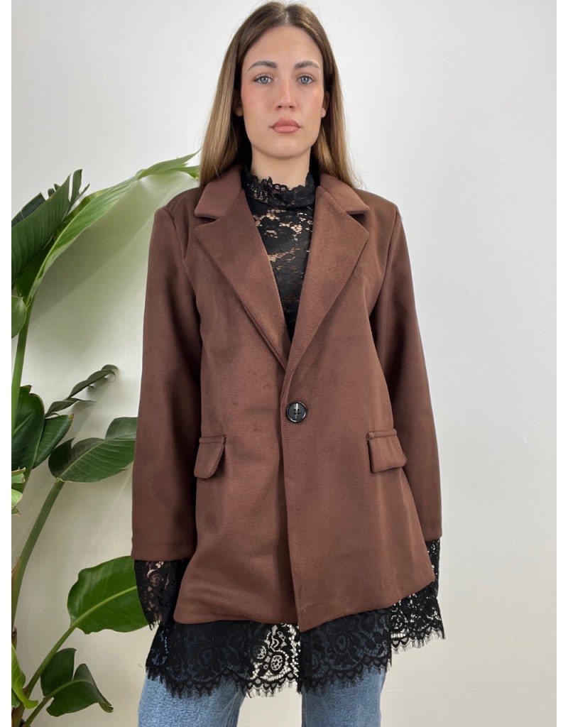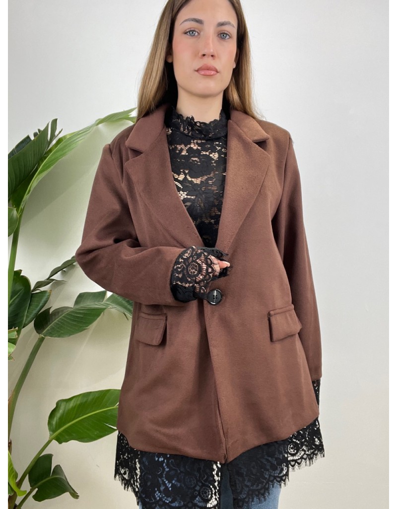 Cappotto modello maxi blazer con pizzo.