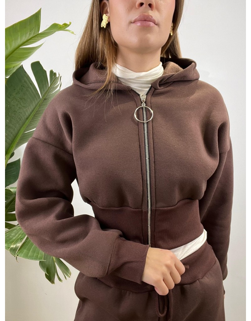 - Felpa Crop con zip e cappuccio;