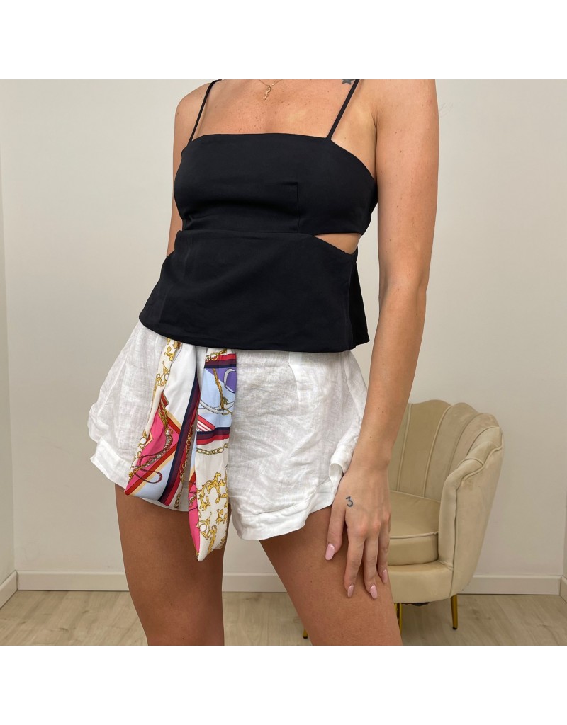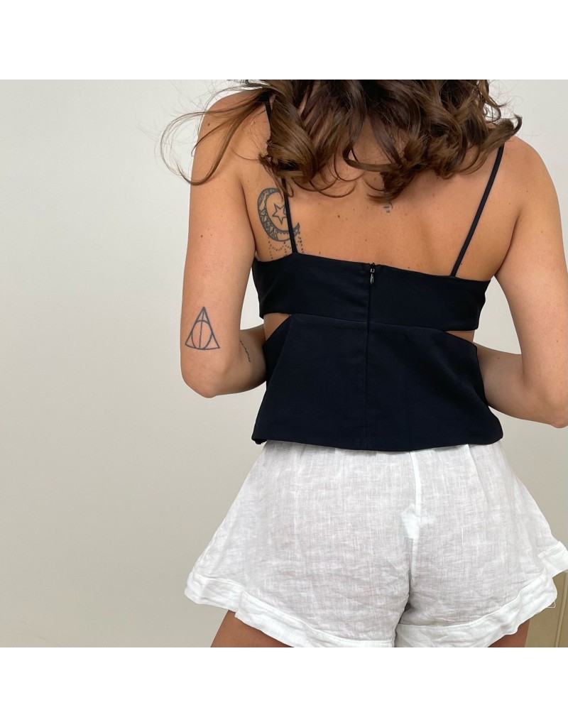 Top con ritagli laterali,scollo dritto,bretelle sottili e chiusura con zip nella parte posteriore.